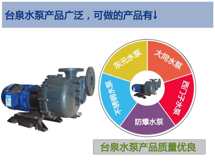臺泉耐酸堿自吸水泵,也叫“大頭泵”“馬肚泵”同軸耐酸堿自吸泵適用與所有含酸堿腐蝕性液體的化工,污水抽送與排放。水泵廣泛使用于電渡、涂裝、化工、PCB線路板、環保設備等方面。