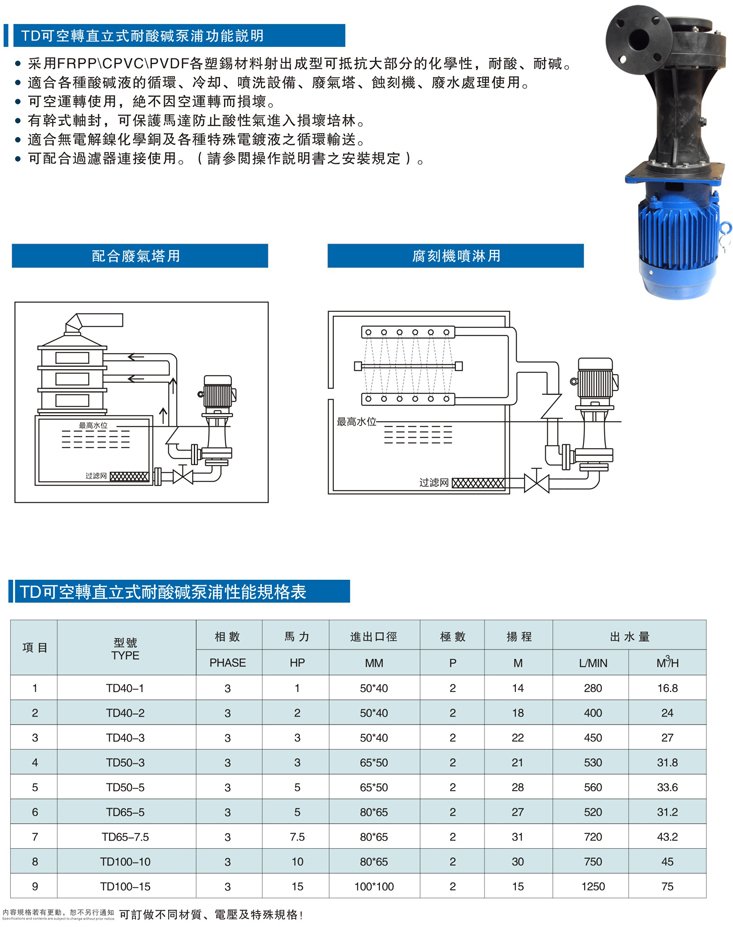 TD直立式耐酸堿泵的特點與優(yōu)勢: