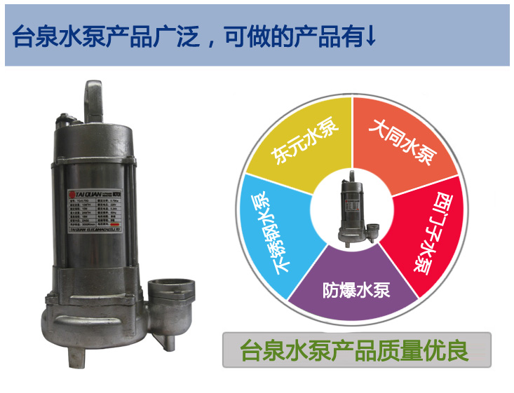 臺泉不銹鋼潛水泵,泵體采用304、316精密鑄造成型,無砂孔問題。水泵廣泛使用于工業(yè)廢水排放,建筑工地排送泥漿水,生活污水,及化工液體排送。